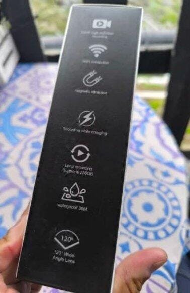 La camera, il pendente magnetico con la corda sicura, supporto con clip portatile